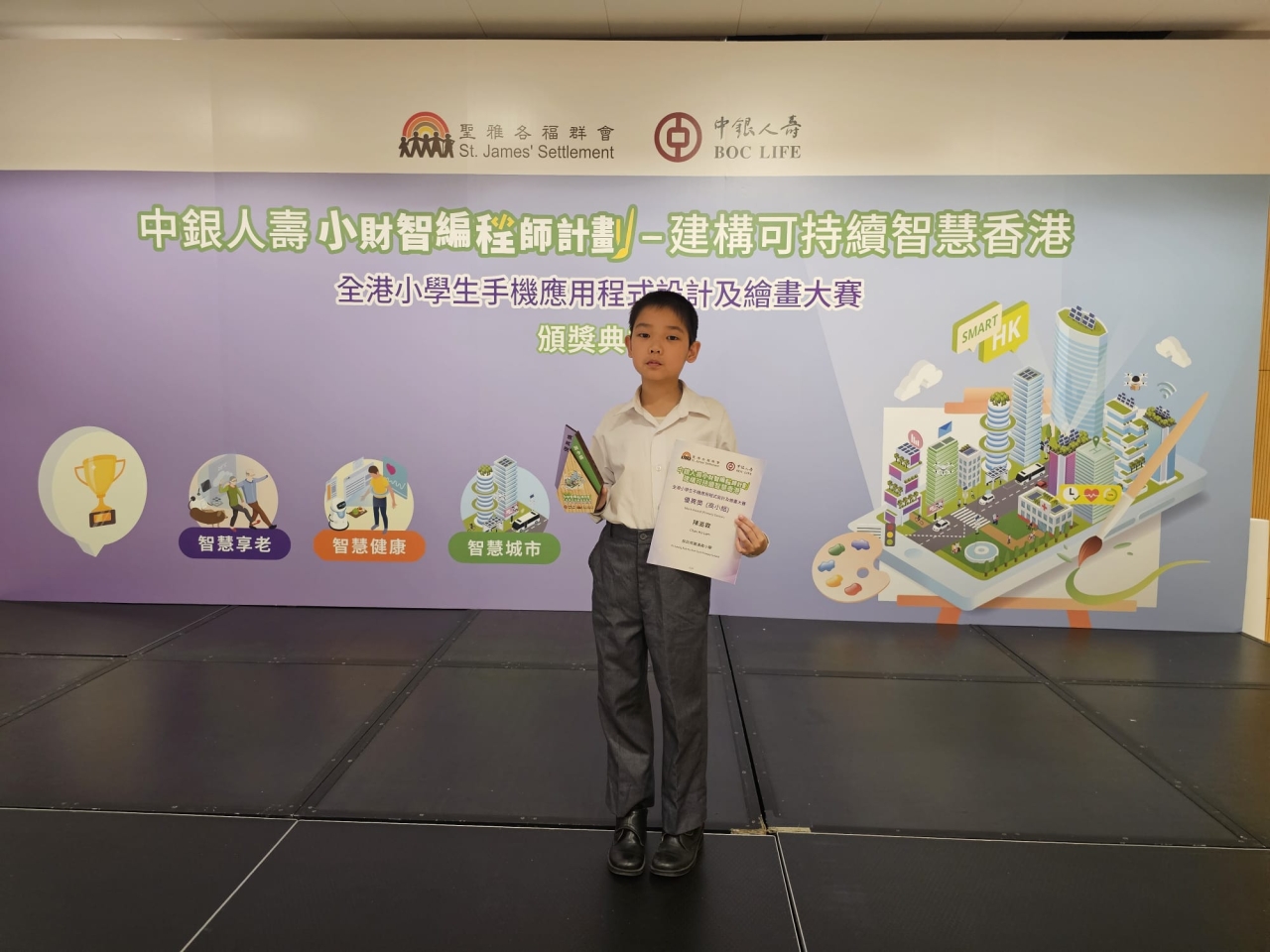 本校6B陳澔霖同學在「中銀人壽小財智編程師計劃──建構可持續智慧香港比賽」中表現出色,榮獲優異獎,佳績令人興奮!